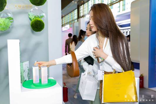 圖說:天貓金妝獎上,年輕女性在試用國貨美妝產品。