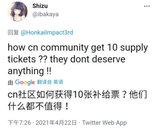 國際服玩家同樣很憤怒:本來好好的享受活動,憑什么中國玩家一抗議就被下架了?憑什么中國玩家反而能得到更多的補償?