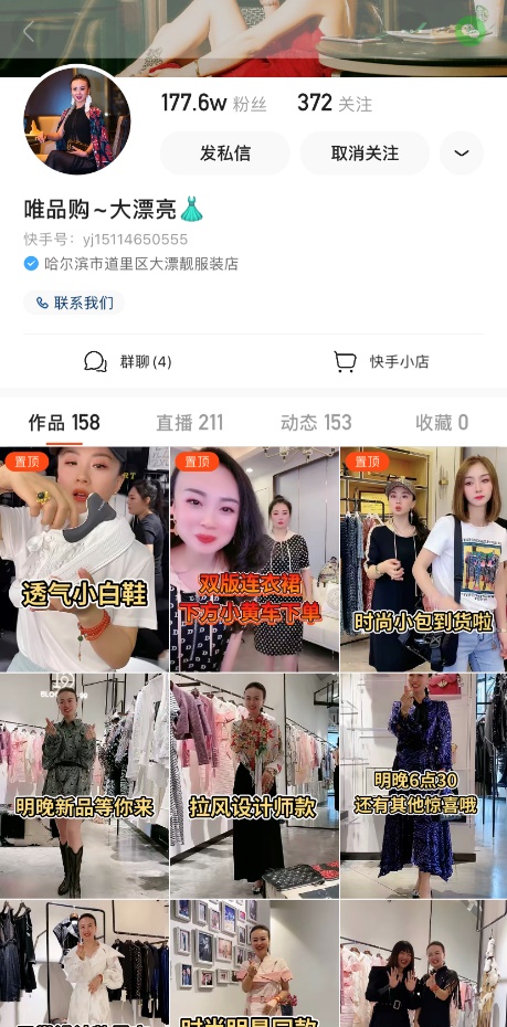 高端時裝也能在快手賣出上億?“唯品購大漂亮”(快手號:yj15114650555)通過“高端宴會商務時裝”這一服裝垂類,精準定位粉絲群體,在兩年間積累177萬粉絲,更創下單場直播峰值GMV破400萬的成績。
