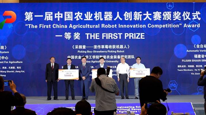 最終,經過激烈的角逐,由林森領銜的“設施園藝機器人作業系統”、中國農業大學研發“采摘童——壟作草莓收獲機器人”以及福建創新企業研發的“全自動垂直農業生產系統”包攬三個“一等獎”。