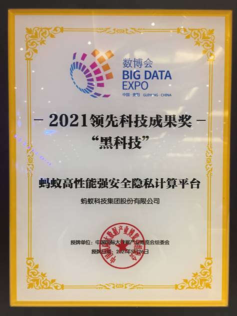 速途網5月27日消息(報道:李楠)昨日,2021年中國國際大數據產業博覽會(簡稱數博會)在貴陽開幕,并對外公布了備受業界關注的“領先科技成果獎”和“十佳大數據案例”。記者了解到,螞蟻集團隱私計算平臺同時入選了上述兩個權威榜單。