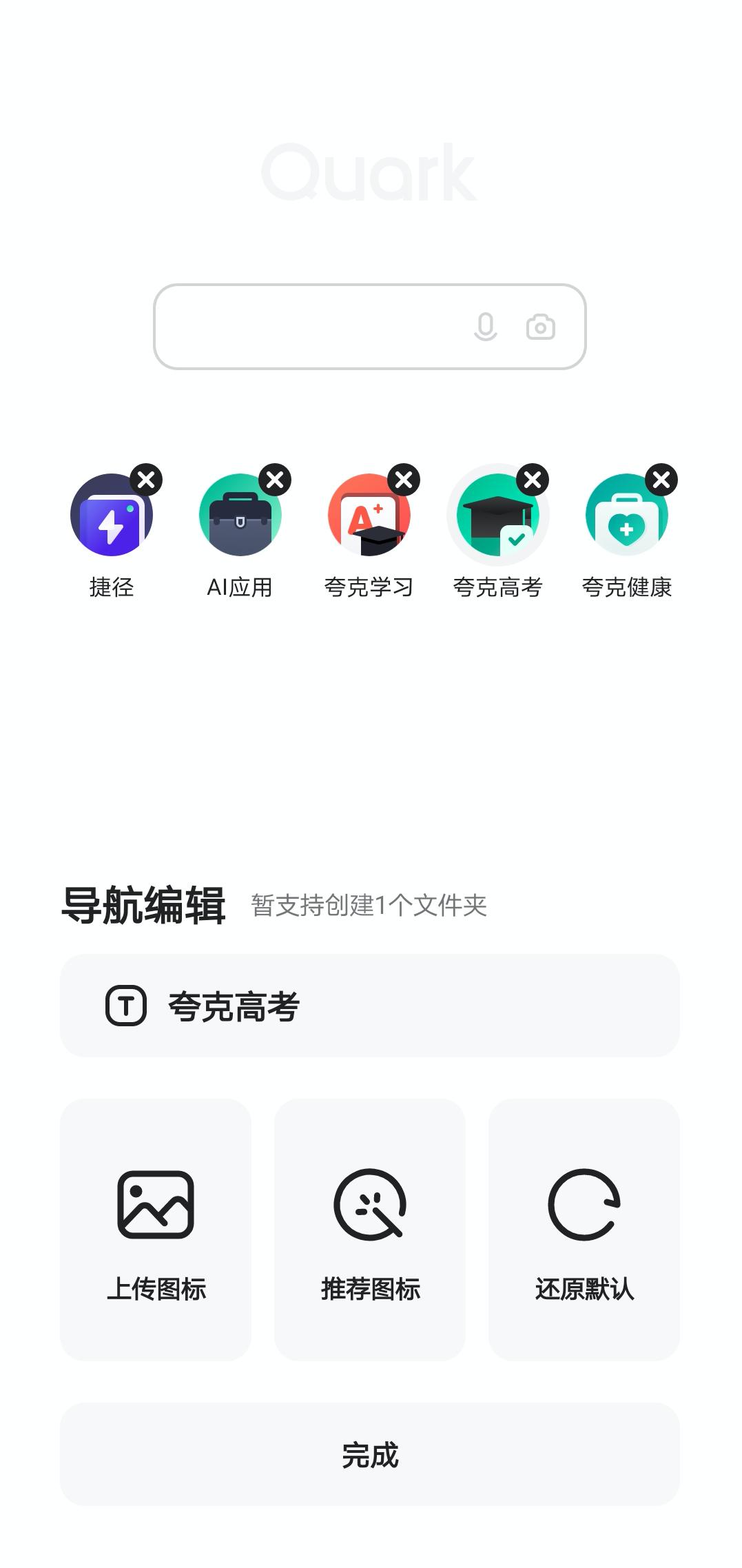 此次新版,夸克進一步將導航擴容,新增了文件夾功能,文件夾內可放置更多導航站點。這意味著,用戶能夠在保持夸克主頁干凈簡約的基礎上,擁有更多導航。甚至,用戶也可以將所有導航刪除,將極簡主義貫徹到底。