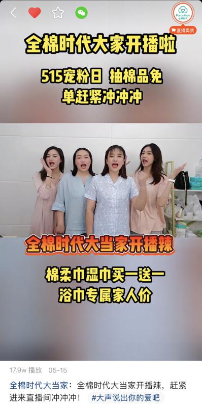 事實上,在此之前,全棉時代也曾與大部分知名品牌一樣,面臨“達人合作直播”還是“品牌自播”的選擇題。最終,全棉時代基于傳統電商平臺的經驗,順應電商市場已從價格和商品驅動轉變為內容和社交驅動的新商業邏輯,決定積極探索“品牌自播”之路。