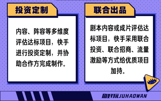 為了讓更優(yōu)質(zhì)的短劇得到平臺扶持,“劇好玩計劃”給出了清晰的合作模式——投資定制和聯(lián)合出品。