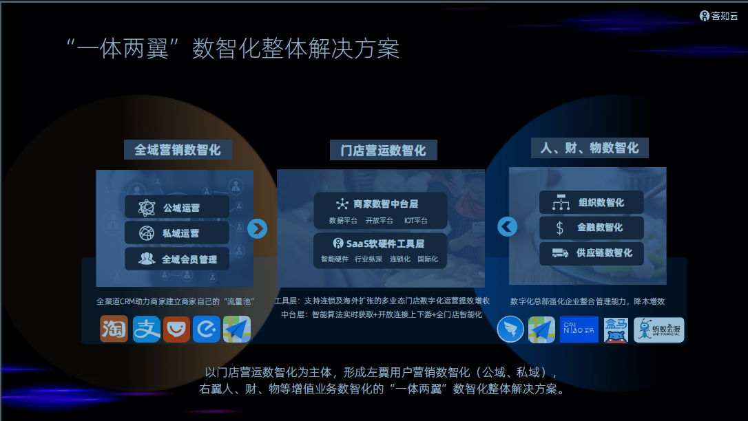 而在產品方面,客如云推出新升級的“一體兩翼”商家數智化整體解決方案,更加全面、系統;在服務方面提供專屬項目管理與服務,為每一個商家配備專屬運維及24小時服務人員,彰顯服務連鎖商家的決心。