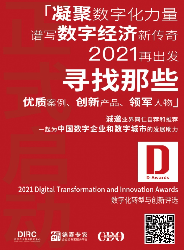7月8日,“2021中國(guó)數(shù)字化轉(zhuǎn)型與創(chuàng)新評(píng)選“正式啟動(dòng),并將于8月-10月進(jìn)行案例路演和研究員面訪,在10月-11月進(jìn)行專(zhuān)家委員會(huì)評(píng)審,并于11月26日-11月30日進(jìn)行頒獎(jiǎng)典禮的通知,最后,在12月舉辦的“中國(guó)數(shù)字化轉(zhuǎn)型與案例大會(huì)”上舉行盛大的頒獎(jiǎng)典禮。
