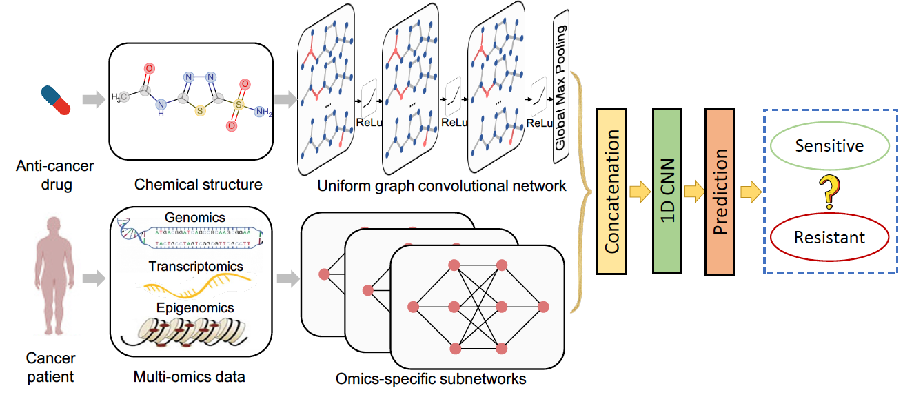 在新藥研發的臨床前實驗階段,對目標疾病的藥物反應進行準確預測是最重要、也最具挑戰性的任務,尤其是在癌癥治療領域。臨床前的實驗主要涉及使用計算模型和相關細胞組織在實驗室環境下的各項分析測試,為后續的人體臨床試驗墊定基礎。近年來,高通量基因測序技術的快速發展極大地推動了基于細胞系的癌癥藥物反應研究。然而,鑒于癌癥致病機理和藥物作用機制的復雜性,傳統方法仍不能有效抓取藥物的化學結構特征,并充分整合基因組、轉錄組等多種組學信息,限制了藥物反應預測準確率的進一步提升。