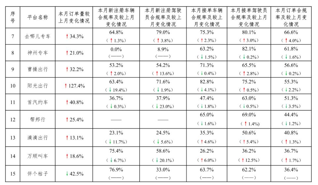 根據(jù)網(wǎng)約車監(jiān)管信息交互平臺發(fā)布7月份網(wǎng)約車行業(yè)運行基本情況顯示,曹操出行訂單合規(guī)率為56.6%,位列第9,較6月下滑0.2%。這意味著曹操出行在發(fā)展過程中仍然有一定的合規(guī)風險,且在提升合規(guī)化的道路上仍然有很長的路要走。