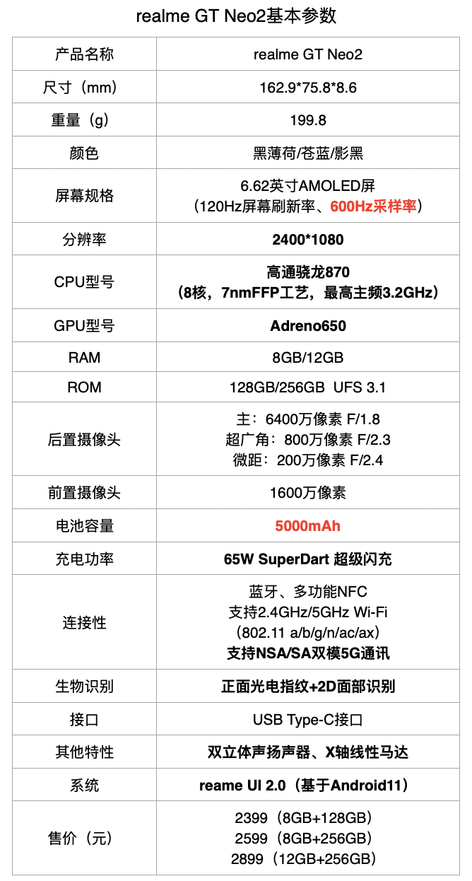 作為一款搭載了5000mAh超大容量電池的機型而言,真我GT Neo2 8.6mm的厚度,與199.8g的重量,在同等電池容量的機型中都屬于輕薄的身材,長時間操控時也能減輕手腕的負擔。