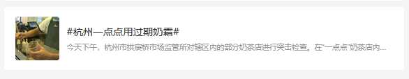 日前,杭州市拱宸橋市場監管所對轄區內的部分奶茶店進行突擊檢查。檢查過程中,在一家“一點點”奶茶門店內,監管人員發現冰箱內存放有過期奶霜。對此,該奶茶店員工解釋稱工作較忙,未及時處理。