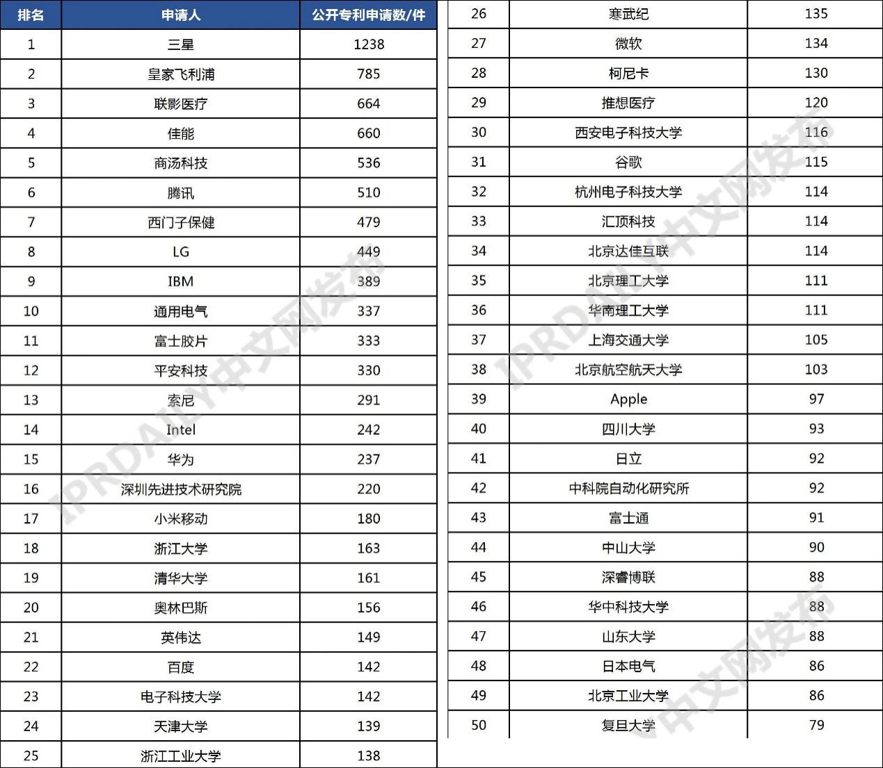 圖:AI醫療影像輔助診斷專利排名,來源:IPRdaily