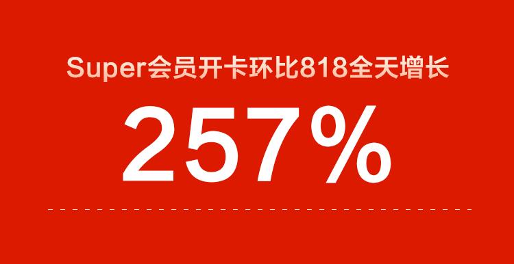 雙十一熱潮也順勢帶動了平臺會員用戶大幅增長,截至12點,蘇寧易購Super會員開卡用戶數環比818全天增長257%。