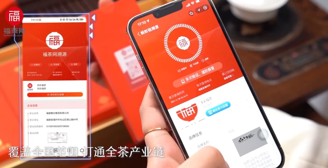 12月10日,福茶網聯合螞蟻鏈推出基于區塊鏈技術的溯源產品“福茶碼”,實現了從種植、加工、質檢、物流、銷售的茶葉全生命周期溯源驗證,提供防偽溯源一體化服務。消費者掃碼即可驗真,并獲得茶葉產地、品種、質檢報告等全部信息。