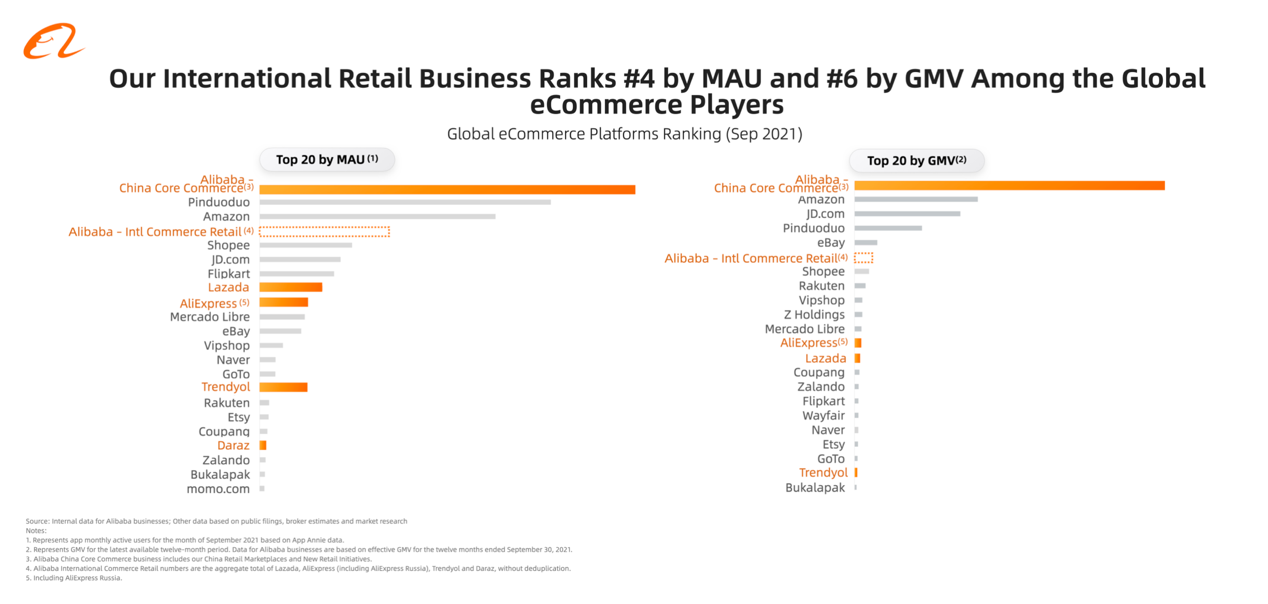 據了解,從月活躍用戶人數(MAU)的角度,阿里巴巴的海外商業平臺均登上全球TOP 20 MAU排行榜,加總后,阿里全球化業務的整體海外MAU排在全球第四名。