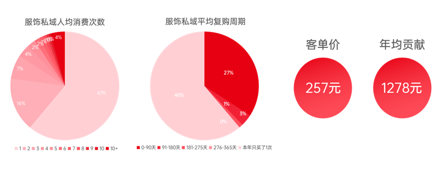 除此之外,私域經(jīng)營為服飾商家?guī)淼膯慰蚅TV價值有明顯提升。報告顯示,有贊服飾行業(yè)商家的私域用戶消費(fèi)金額年均增長超35%,客單價提升68%,私域年復(fù)購2次及以上用戶群體高達(dá)39%,相對于公域拉新效率高但二次觸達(dá)難的特性,私域更有利于品牌培養(yǎng)用戶忠誠度。