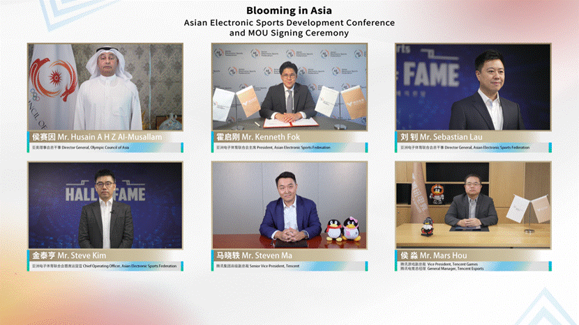 速途網(wǎng)1月21日消息(報(bào)道:李楠)昨日,亞洲奧林匹克理事會(huì)(以下簡稱亞奧理事會(huì))和亞洲電子體育聯(lián)合會(huì)(以下簡稱亞電體聯(lián))發(fā)起了主題為“亞洲競放”的共促亞洲電競發(fā)展啟動(dòng)會(huì)暨合作簽約儀式。亞洲奧林匹克理事會(huì)總干事侯賽因、亞洲電子體育聯(lián)合會(huì)主席霍啟剛、騰訊集團(tuán)高級(jí)副總裁馬曉軼、亞洲電子體育聯(lián)合會(huì)總干事劉釗、亞洲電子體育聯(lián)合會(huì)首席運(yùn)營官金泰亨、騰訊游戲副總裁、騰訊電競總經(jīng)理侯淼等嘉賓線上出席了此次會(huì)議。