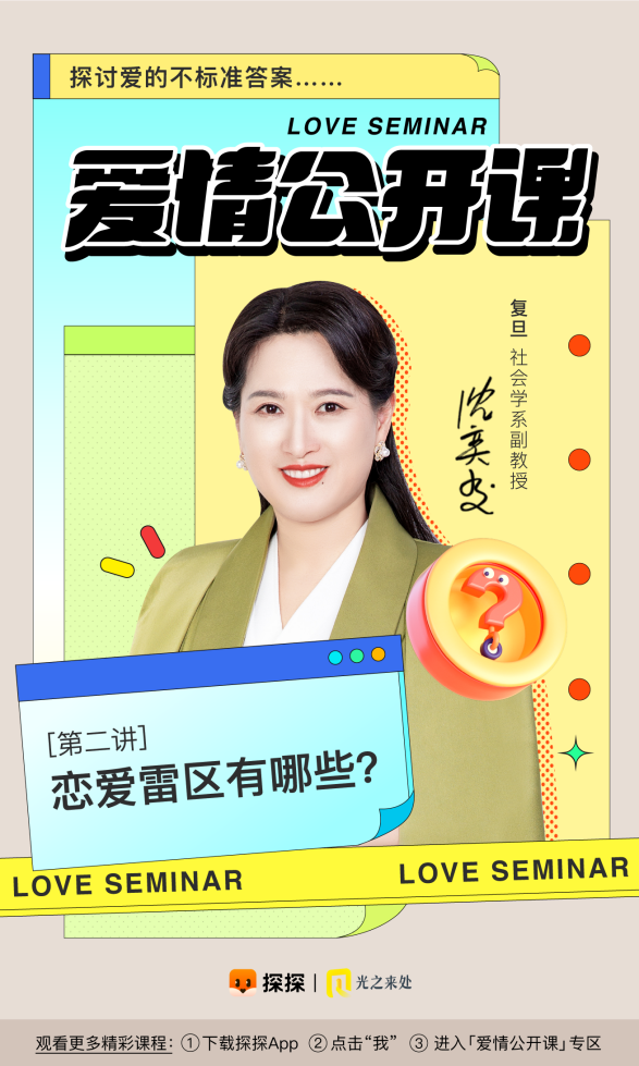 速途網(wǎng)3月8日消息(報(bào)道:李楠)女生節(jié)之際,探探愛情公開課第二講推出,攜手社會(huì)學(xué)博士、復(fù)旦大學(xué)社會(huì)學(xué)系副教授沈奕斐,為年輕人解析正在悄悄毀掉愛情的那些戀愛雷區(qū)。