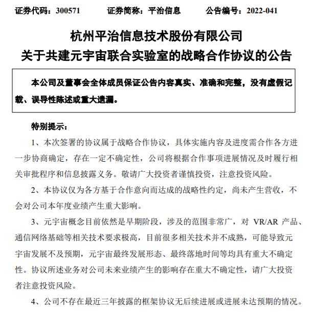 平治信息:計(jì)劃成立元宇宙聯(lián)合實(shí)驗(yàn)室