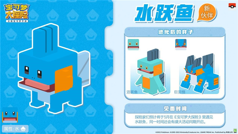 本次周年慶,《寶可夢大探險》準備搞一波大的。這次要推出的是新世代豐緣御三家寶可夢:水躍魚、火稚雞、木守宮。熟悉寶可夢的玩家都知道,水躍魚可以說是豐緣御三家中的梗王。