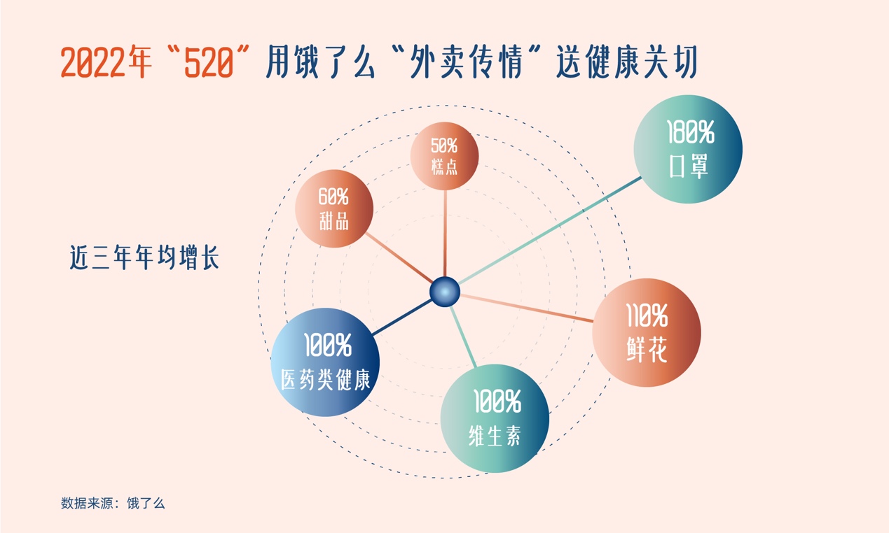 除了鮮花之外,特殊時(shí)期,哪怕情人節(jié)、“520”這種節(jié)日,人們也開始用外賣給愛人贈(zèng)送口罩、水果、維生素C,更加關(guān)心彼此的健康。餓了么數(shù)據(jù)顯示,近三年“520”期間,用“外賣傳情”表達(dá)健康關(guān)切的醫(yī)藥健康類商品訂單年均增長1倍,其中,口罩訂單年均增長近2倍,維生素訂單每年翻倍增長。