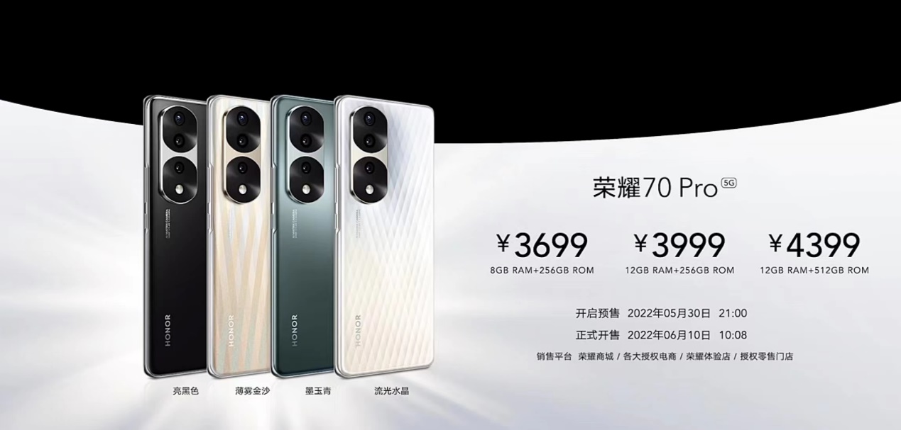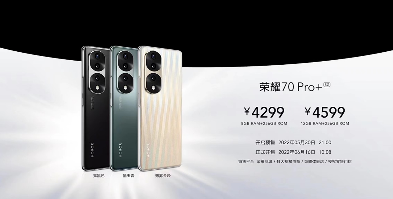 榮耀70系列實現(xiàn)了影像、外觀、性能體驗上的全面升級,稱得上是一代全新?lián)Q代之作。自2022年6月7日起,榮耀70系列將陸續(xù)在線上線下平臺全面開售,具體時間詳見榮耀官網(wǎng),用戶可登錄榮耀商城及各大授權(quán)電商平臺或前往線下門店進行購買。