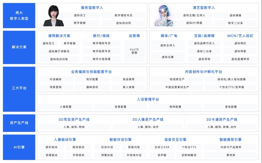 以基礎技術能力為例,百度智能云曦靈平臺打通了數字人生產、人設管理、內容創作到業務編排全流程,結合UNIT7.0跨模態對話引擎及AIGC技術,形成了支持服務型和演藝型數字人高效生產及運營的平臺級產品。