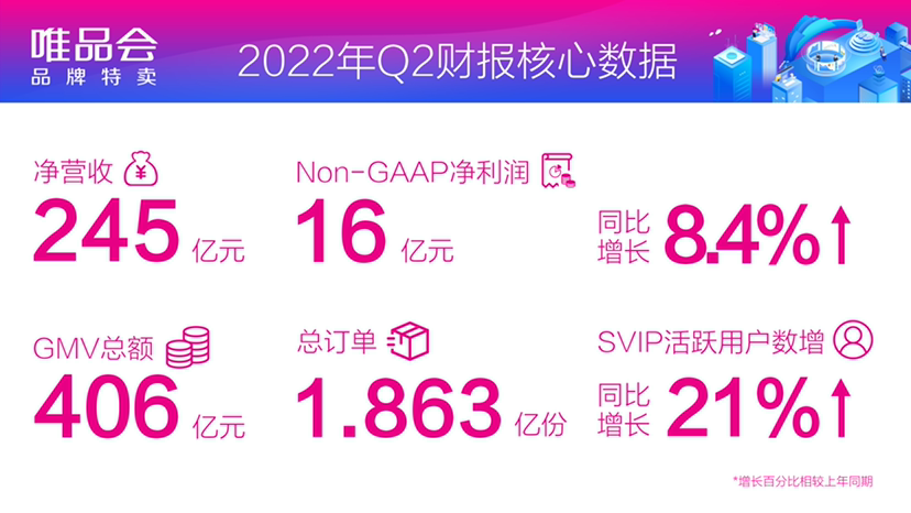 速途網8月19日消息(報道:李楠)今日,唯品會發布2022年第二季度財報,公司當季實現凈營收245億元(人民幣,下同),歸屬于公司股東的Non-GAAP凈利潤16億元,同比增長8.4%;利潤水平和整體利潤率均實現同比增長。