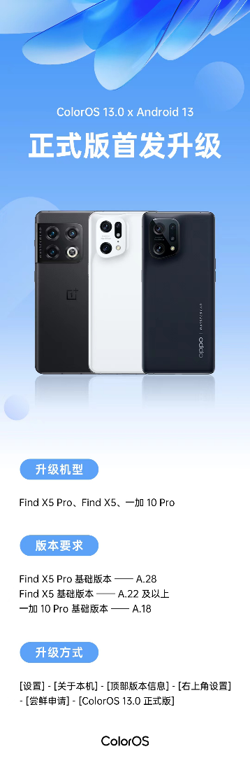 ColorOS 13正式版是行業首個同步Android 13大版本的系統,OPPO已連續四年實現與谷歌同步,在行業內首發安卓大版本的公測版。此次系統升級,將為安卓用戶帶來全面流暢和智慧互融的體驗。
