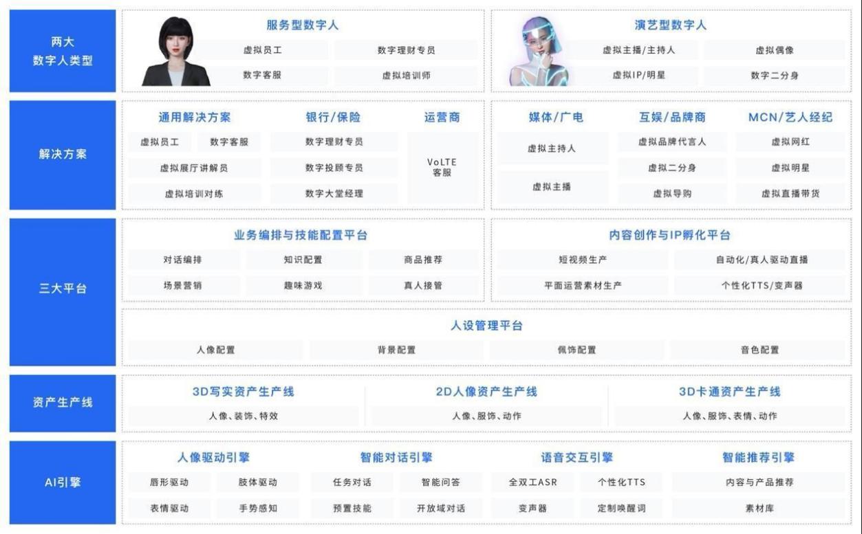 眾所周知,從使用場景來看,虛擬人主要分為兩類,一類是人格型虛擬人,其主要的場景價值在于IP運營,例如虛擬IP、虛擬偶像等場景,主要考量虛擬人的“IP運營能力”。而另一類則是服務(wù)型虛擬人,其主要應(yīng)用場景在于“輔助或替代真人工作”,通過強化功能性、實用性、定制性,幫助企業(yè)完成數(shù)字化轉(zhuǎn)型,主要考量虛擬人的“技術(shù)攻關(guān)”能力。