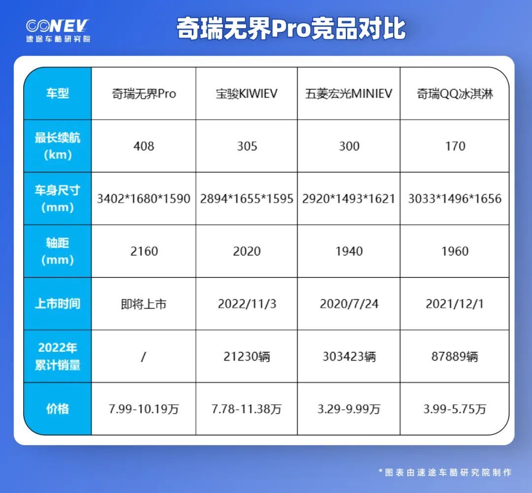 不過,雖然無界Pro相比QQ冰淇淋、小螞蟻在諸多方面有所升級,但價格也比后者更貴,加之自詡為寶駿“KiWi”的友軍。都讓人不禁懷疑,一款預售價超10萬的微型電動車真的能有市場嗎?