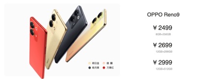 OPPO Reno9系列提供Reno9 Pro+、Reno9 Pro與Reno9三個(gè)版本。OPPO Reno9 Pro+提供明日金、皓月黑、碧海青三種配色,16GB+256GB版本售價(jià)3999元,16GB+512GB版本售價(jià)4399元;OPPO Reno9 Pro提供明日金、皓月黑、微醺三種配色,16GB+256GB版本售價(jià)3499元,16GB+512GB版本售價(jià)3799元;OPPO Reno9同樣提供明日金、皓月黑、微醺三種配色,8GB+256GB版本售價(jià)2499元,12GB+256GB版本售價(jià)2699元,12GB+512GB版本售價(jià)2999元。