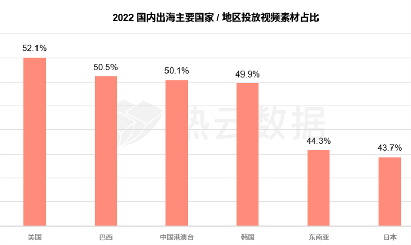 美國依然國內(nèi)手游出海買量游戲數(shù)量最高的國家;中國港澳臺(tái)地區(qū)憑借地緣優(yōu)勢,今年新增出海買量游戲比例最高。此外,投放視頻廣告同樣成為國內(nèi)出海廠商的主流買量方式。美國成為我國出海買量游戲投放視頻素材最高的國家,巴西、港澳臺(tái)地區(qū)的視頻廣告投放數(shù)量均超半數(shù)。