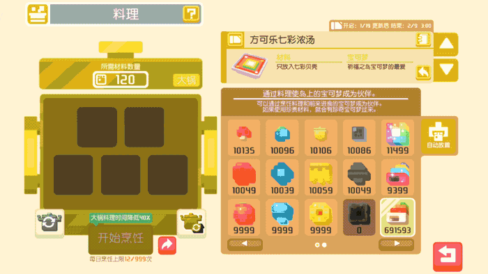 方可樂島的團圓宴來啦!在“祈福之島”春節版本期間,探險家們可以通過參與活動獲得和兌換新食材“七彩貝殼”,烹飪出鮮美豐盛的“方可樂七彩濃湯”。鳳王、太陽伊布、月亮伊布、水君、炎帝和雷公等寶可夢伙伴都十分期待這道新年大餐~趕快動手制作料理,和心儀的寶可夢成為伙伴吧!