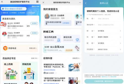 隨后,京東健康又復(fù)制并升級該模式,與內(nèi)蒙古、河北、山東、青海、四川等多地政府推進(jìn)合作,上線基層疫情防護(hù)服務(wù)平臺。當(dāng)?shù)厣鐓^(qū)醫(yī)生和鄉(xiāng)村醫(yī)生可直接入駐京東健康互聯(lián)網(wǎng)醫(yī)院,不僅可通過平臺小程序等智能工具將健康監(jiān)測問卷發(fā)送給社區(qū)居民,及時、準(zhǔn)確地掌握每一位居民的健康狀況,還能夠在線開展常見病的問診咨詢、慢病復(fù)診等服務(wù),保障居民就醫(yī)需求。此外,平臺還會收集當(dāng)?shù)氐尼t(yī)療機(jī)構(gòu)防疫電話,如有緊急醫(yī)療需求或者較嚴(yán)重突發(fā)癥狀的患者,也可以及時通過電話與當(dāng)?shù)蒯t(yī)院聯(lián)絡(luò)。