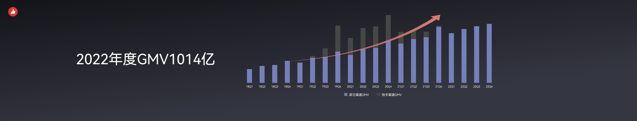 有贊 COO 兼聯席總裁浣昉以私域成績單的形式,回顧了過去一年中有贊商家的經營情況。2022年有贊商家交易額達到1014億元,同比增長3%,非快手渠道的GMV相比2021年同比增長19%。