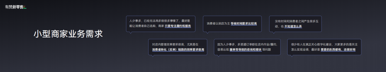 針對門店新零售客群,有贊CTO兼聯席總裁崔玉松認為,中大型商家和小型商家雖然面臨的大部分問題相似,但是由于組織方式、IT基礎能力、用戶影響力、產品能力等差異,導致了在最終實踐的時候還是有不少的差異。