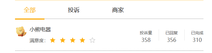 然而,讓人無法預料的是,盡管小熊電器在用戶形象上“大下苦功”,但仍屢陷質量問題,頻繁被消費者投訴。2022年1月,上海市市場監管局的抽查結果顯示,小熊電器型號為XNQ-A02F1的吸奶器被檢出“標志和說明”項目不合格。2022年3月,小熊電器型號為ZDH-A06G1的電水壺因沸水斷電時間超標而被江蘇省消保委認定抽檢不合格。在黑貓投訴平臺上,小熊電器的產品也經常被投訴產品質量有問題,相關投訴累計有350多條。