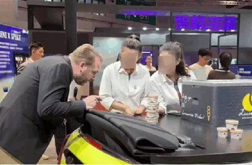 速途網訊(報道:鄒若涵)上海車展寶馬mini展臺4月19日派發免費冰淇淋時,兩名禮儀人員以派完為由拒絕中國訪客領取冰淇淋的請求,隨后卻向另一名詢問的外國訪客送上冰淇淋。