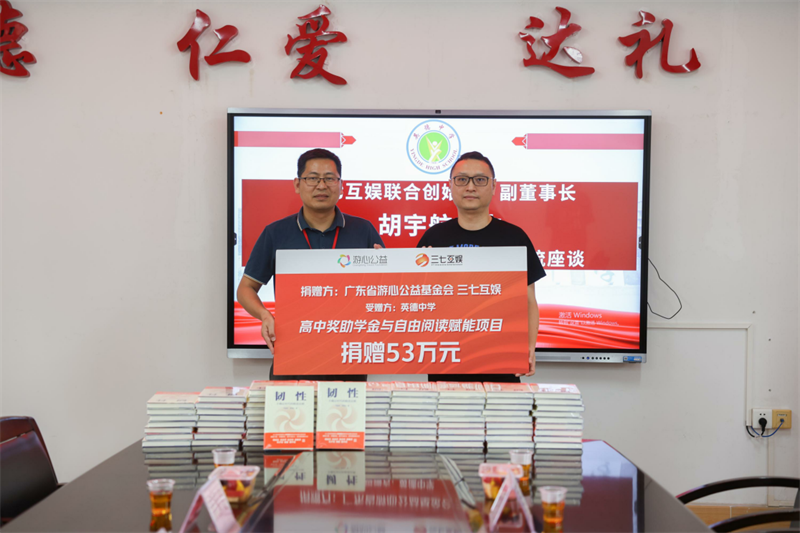 活動當天,為了讓知識惠及更多學子,胡宇航代表三七互娛向學子們捐贈了一批書籍,希望他們通過閱讀,拓展思想的深度、培養眼界的廣度。其中,他特別推薦了一本書籍—《韌性》,這本書以真實的案例和深刻的分析,探討了人們在面對挑戰時如何保持韌性和堅韌不拔的品質。胡宇航希望希望以此鼓勵游心伙伴們在面對困難和挑戰時,能夠更加勇敢、堅定和有信心。