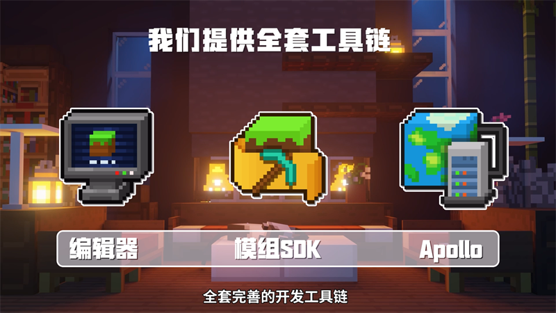 此外,《我的世界》也在不斷投入開發(fā)工具建設,為打造完善的工具鏈進行功能的持續(xù)打磨。官方開發(fā)工作臺集編輯器、模組SDK、Apollo等功能于一體,在不斷的更新優(yōu)化中形成了全套完善的開發(fā)工具鏈,更好地響應開發(fā)者們不同的開發(fā)需求,助力無編程基礎的新開發(fā)者一步步成為開發(fā)大神。