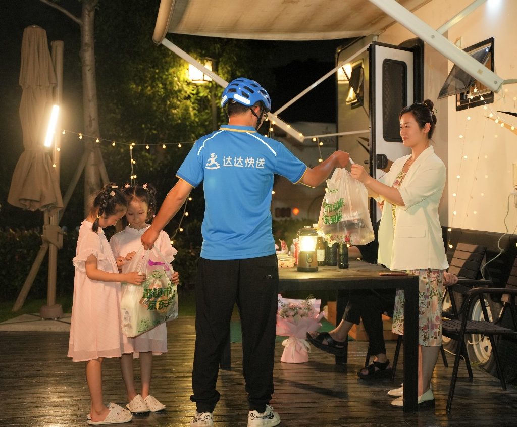 杭州的孫女士也在晚8點(diǎn)后沒多久,在湘湖露營地收到了幾大包沉甸甸的”禮物”,成為京東618杭州的即時(shí)零售第一單。原來,這是她丈夫?yàn)榻o她浪漫的生日驚喜,特別策劃了一家四口來個(gè)”說走就走”的露營旅行,趁著618活動(dòng)開啟,在京東到家下單了帳篷、彩燈等露營裝備,并蛋糕、鮮花、西瓜、楊梅、酒水、零食、驅(qū)蚊液等所有吃喝玩的用品。通過隨買隨得的便利體驗(yàn),實(shí)現(xiàn)各類用品一站式購齊。