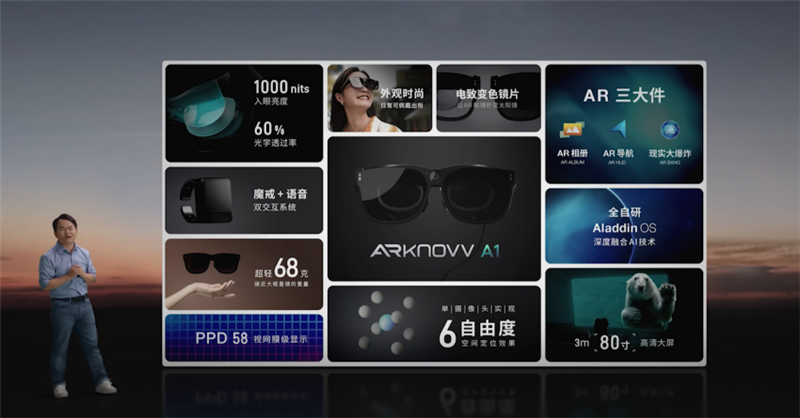 致敬未知在7月25日舉辦了創(chuàng)建以來的首場發(fā)布會(huì)——ARknovv品牌發(fā)布暨新品上市發(fā)布會(huì)。發(fā)布會(huì)上,致敬未知?jiǎng)?chuàng)始人兼CEO吳德周公布了全新AR品牌ARknovv,并正式推出兩款A(yù)R眼鏡產(chǎn)品:首款“可戴出門的消費(fèi)級AR眼鏡”——ARknovv A1,及ARknovv A1 HUD。其中,ARknovv A1支持步行導(dǎo)航,適用于大眾人群,ARknovv A1 HUD 步行導(dǎo)航、HUD駕駛導(dǎo)航均可支持,更適用于駕駛?cè)巳骸煽預(yù)R眼鏡價(jià)格分別為2988元和3988元,均將于9月26日開啟預(yù)售。