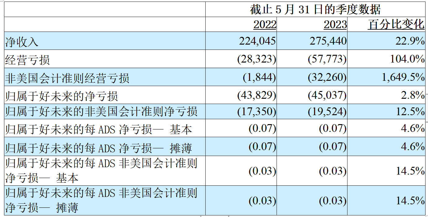 速途網訊 7月27日 好未來教育(紐約證券交易所:TAL,下稱“好未來”或“公司”)是中國智能學習解決方案提供商。日前,公司公布其截至2023年5月31日的2024財年第一季度未經審計財務報告。
