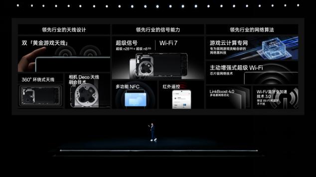 網絡方面,一加 Ace 2 Pro 在腰部新增了雙黃金游戲天線,手機無論怎么握持,都能保持超強的信號連接。同時,一加Ace 2 Pro 借助一加自研“低頻天線小型化技術”, 將鏡頭模組區域做成天線,天線能力得到了大幅提升。在行業最常用的N28和N8頻段,一加 Ace 2 Pro 將此前的 2 條天線升級為了 4 條,實現了「超級 N28/N8 5G 信號」,帶來更快、更穩定的 5G 網絡體驗。一加 Ace 2 Pro 還全面接入了 Wi-Fi 7 協議,通過多重網絡技術專項優化,帶來更高速、更穩定、更低延遲和更廣覆蓋范圍的 Wi-Fi 使用體驗。在此基礎上,一加 Ace 2 Pro 同樣支持“主動增強式超級 Wi-Fi”、“LinkBoost 4.0”、“游戲云計算專網”等多項網絡技術,在各類場景內都能為用戶帶來快速、穩定的網絡使用體驗。
