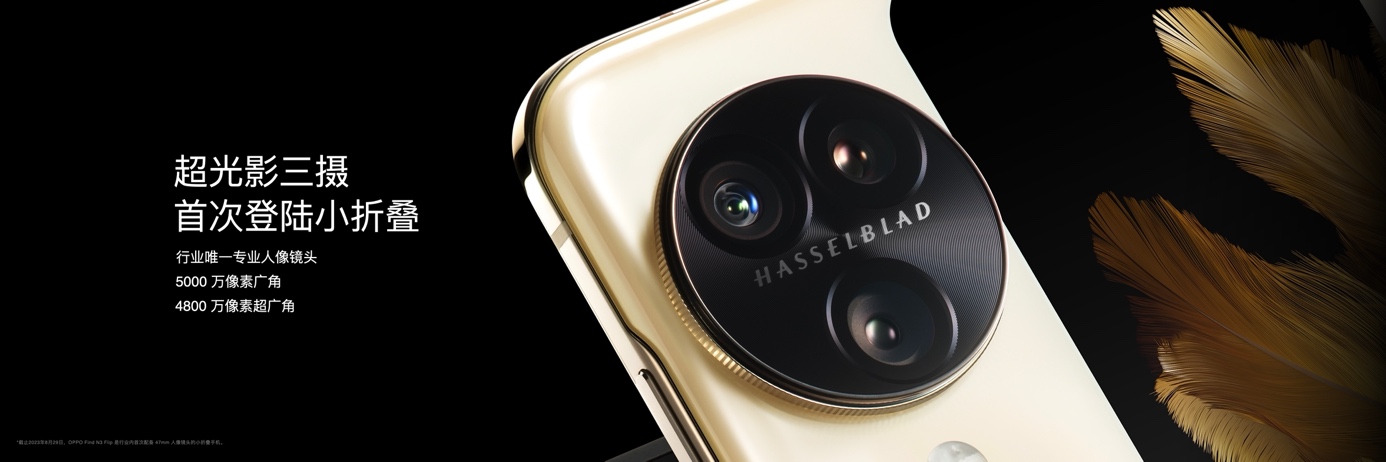 Find N3 Flip 全面繼承 Find X6 系列的旗艦影像能力,以領先行業的超光影三攝、超光影圖像引擎、專業哈蘇人像,結合小折疊獨特的靈動形態,創造小折疊影像的新標桿。