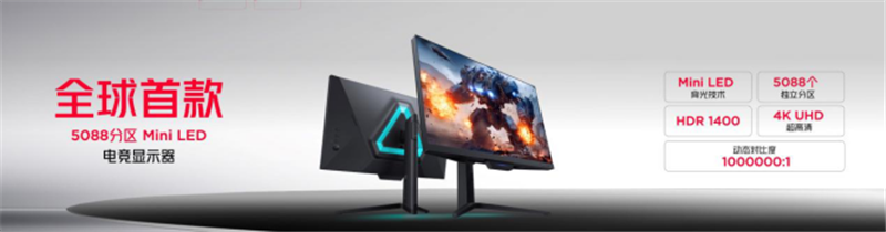除了電競級影刃2代手柄,紅魔電競宇宙還有兩款規格極高的電競顯示器。首先是全球首款5088分區的miniLED電競顯示器,紅魔為其配備4K?160Hz高刷,99%的DCI-P3廣色域,色準 △E<1、還有滿配的全速率接口,達到行業頂級水準。紅魔5088分區的miniLED電競顯示器售價5999元,首發嘗鮮價5499元!