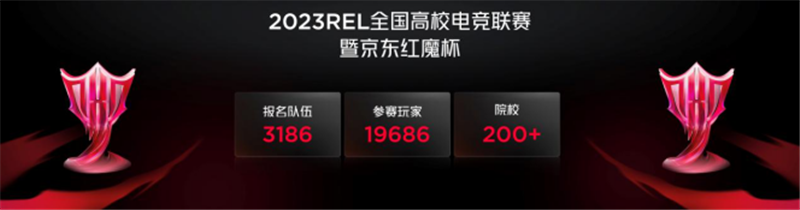 不僅電競裝備硬件和大家玩在一起,紅魔還在助力玩家們的熱血電競夢。2023REL全國高校電競聯賽暨京東×紅魔杯進行得如火如荼,共有兩百多所院校參加,參賽玩家數量達到19686名,千萬高校玩家在紅魔舞臺上同臺競技,電競夢想得以成真。