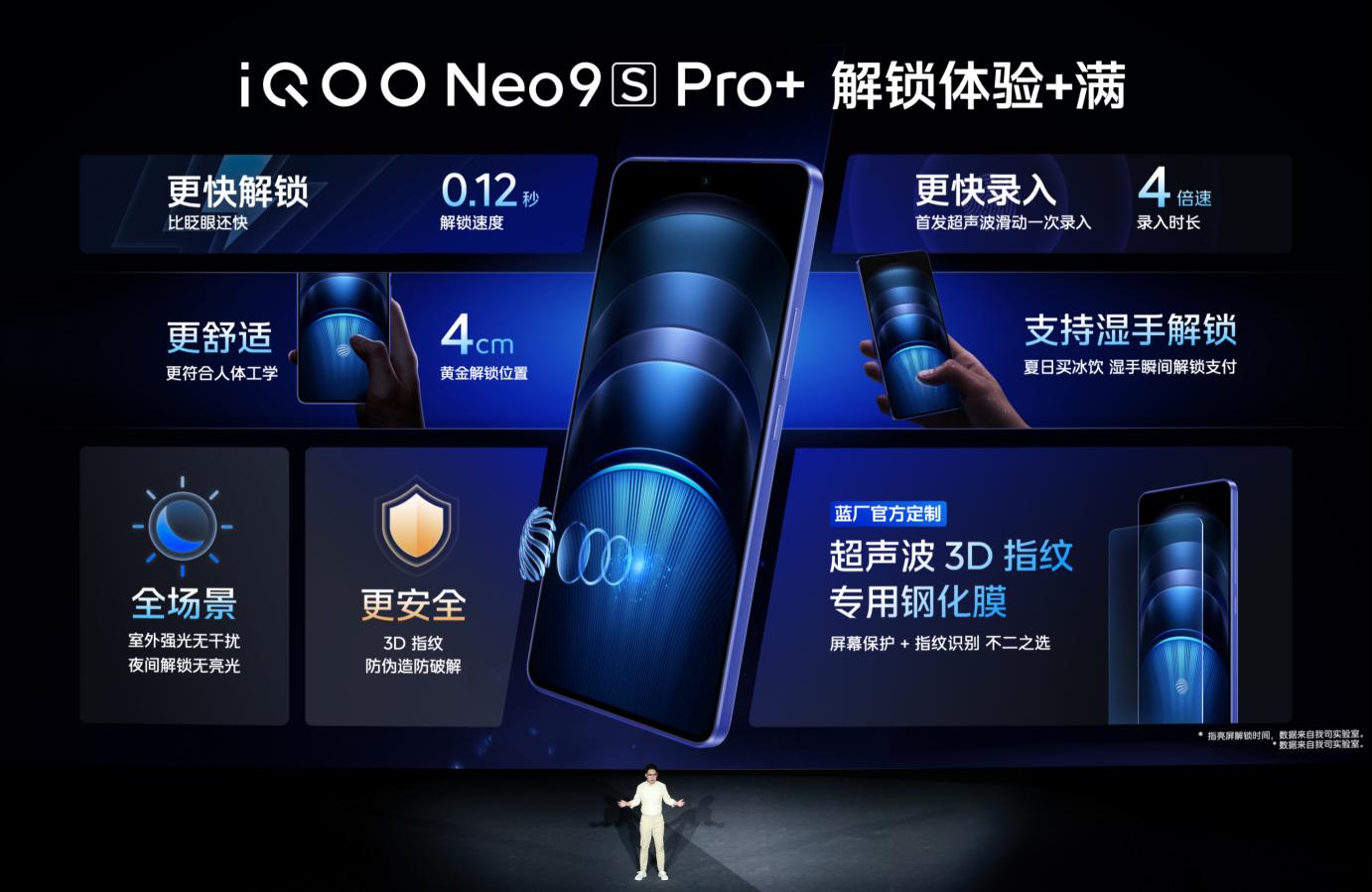 此次,iQOO Neo9S Pro+還行業首發超聲波滑動一次錄入,對比普通光學指紋的按壓錄入簡直像開了四倍速,同時推出為超聲波3D指紋量身打造的鋼化膜,解鎖體驗“+滿”。