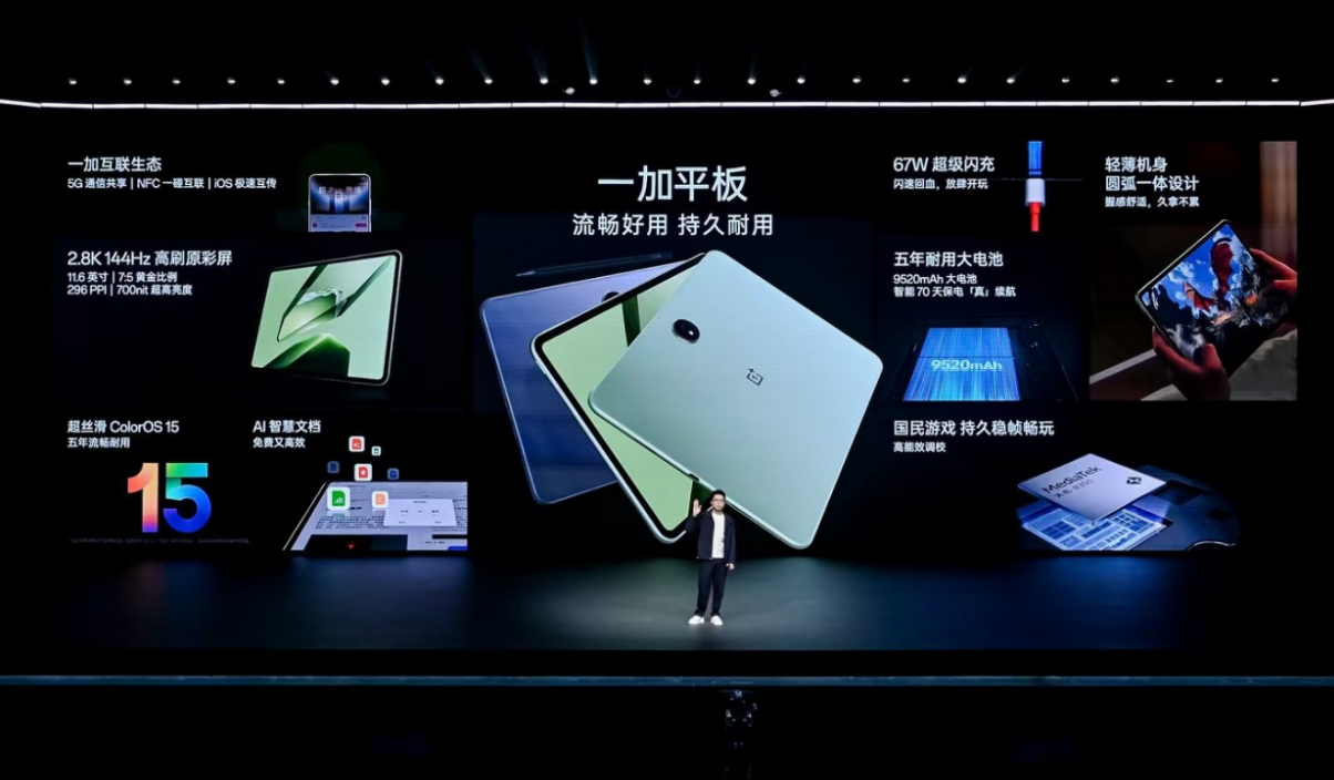 一加平板提供苔原綠、深空灰兩種配色,搭載天璣 8350 旗艦芯片,擁有至高 16GB+512GB 存儲組合。一加平板搭載 11.6 英寸 2.8K 144Hz 黃金比例高刷原彩屏,不僅顯示清晰,還兼具舒適的握持感;一加平板支持 67W 超級閃充,且擁有 9520mAh 耐用大電池,還支持智能 70 天保電,持久耐用。一加平板搭載 ColorOS 15 系統(tǒng),不僅流暢易用,還擁有系統(tǒng)級 AI 能力,支持一鍵問屏、AI 智慧文檔、AI 語音摘要等功能,無論是學習還是辦公都能更加高效便捷。此外,一加平板還支持通信共享、一碰互聯(lián)、文件隨心開等功能,既能暢玩游戲,也能高效學習,是當代大學生的首選平板。
