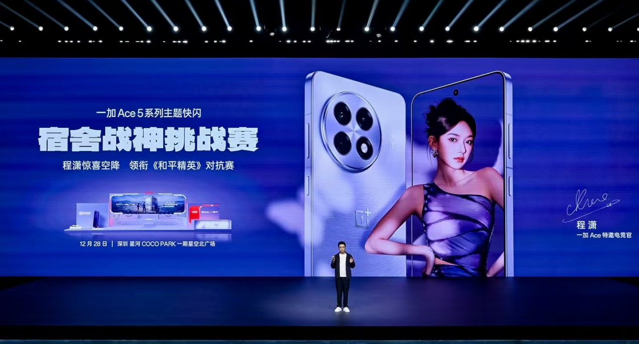 12 月 28 日,一加 Ace 5 系列 Pop-up 將在北京、長沙、貴陽等八城同時開啟,一加特邀電競官程瀟將空降深圳快閃現(xiàn)場,參與《和平精英》對抗賽。